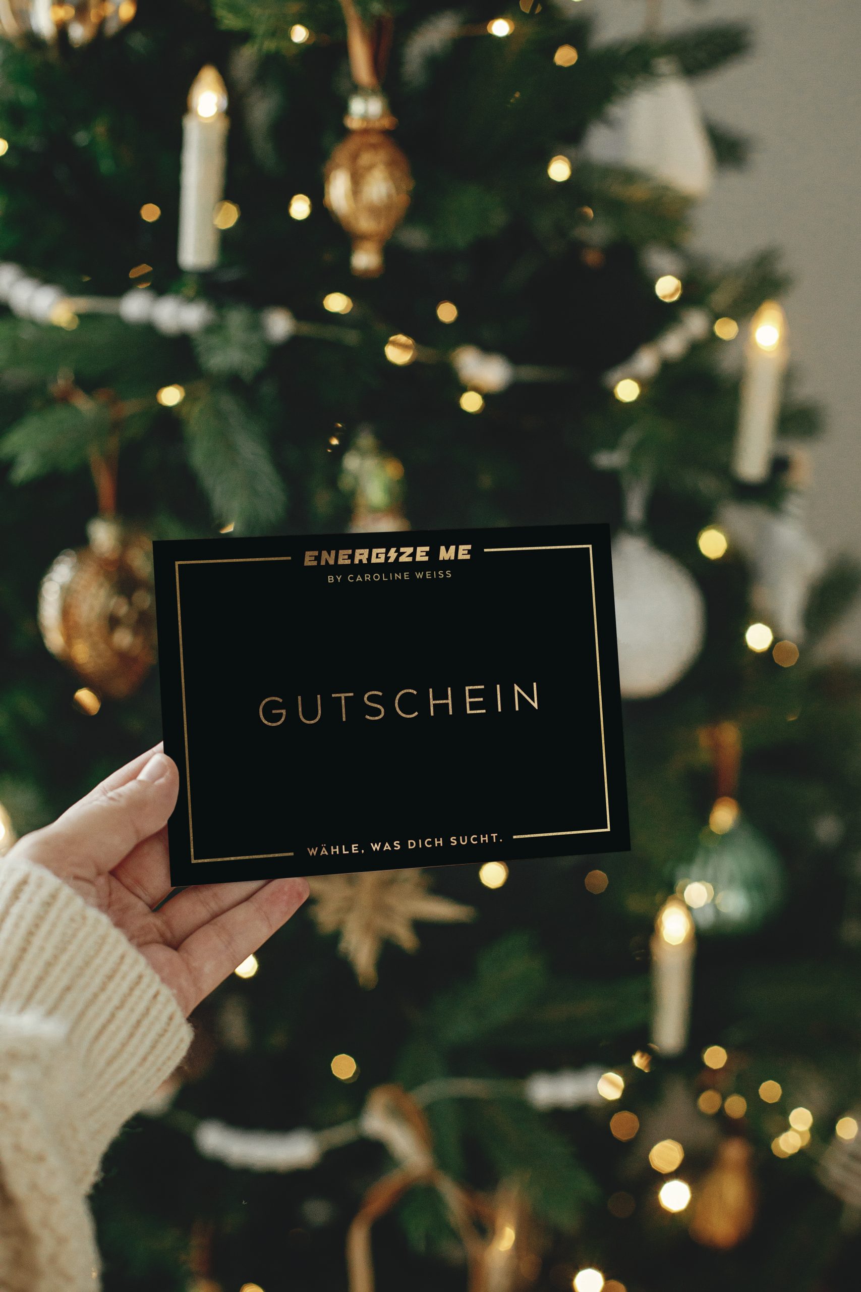 Der ENERGIZE ME Gutschein schenkt keinen Gegenstand, sondern einen Moment, in dem jemand bewusst wählen kann, was stärkt und gut tut. Erhältlich als PDF oder edle A7-Klappkarte mit Goldfolienprägung.